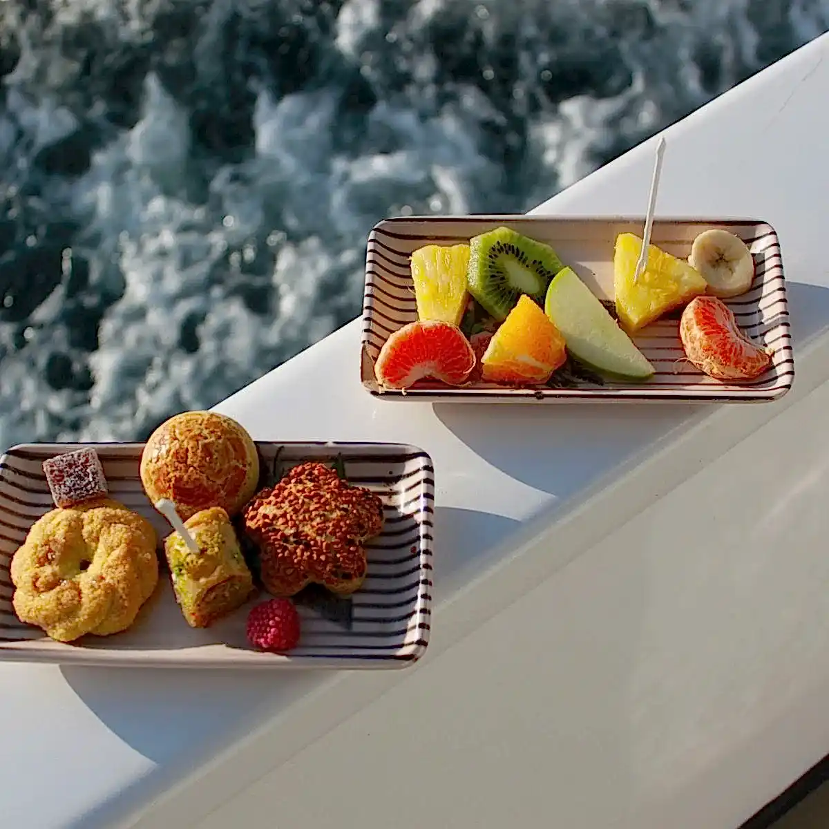 Tekne turlarımızda çeşitli ikramlar sunuyoruz. Teşekkürler.